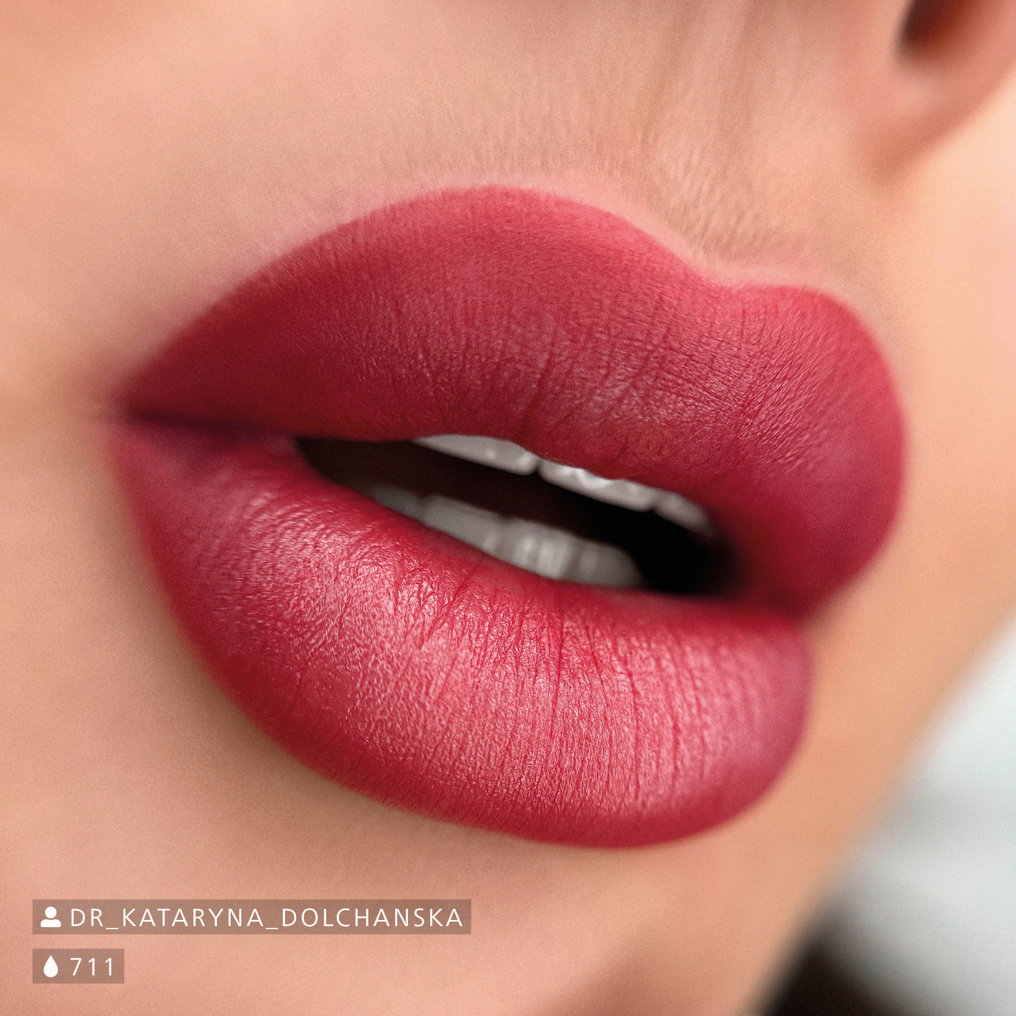 Verwenden Sie 711 Romantic Rouge bei Fitzpatrick Hauttypen V und VI mit einer dichten Pigmentiertechnik. Seine anorganischen Komponenten machen es auch ideal für anspruchsvolle Pigmentierungen, wie bei narbiger und atrophischer Haut. Mit der 901 Pigment Solution erhält die Farbe einen aquarelligen Look, der ideal für helle, natürliche Lippen ist.